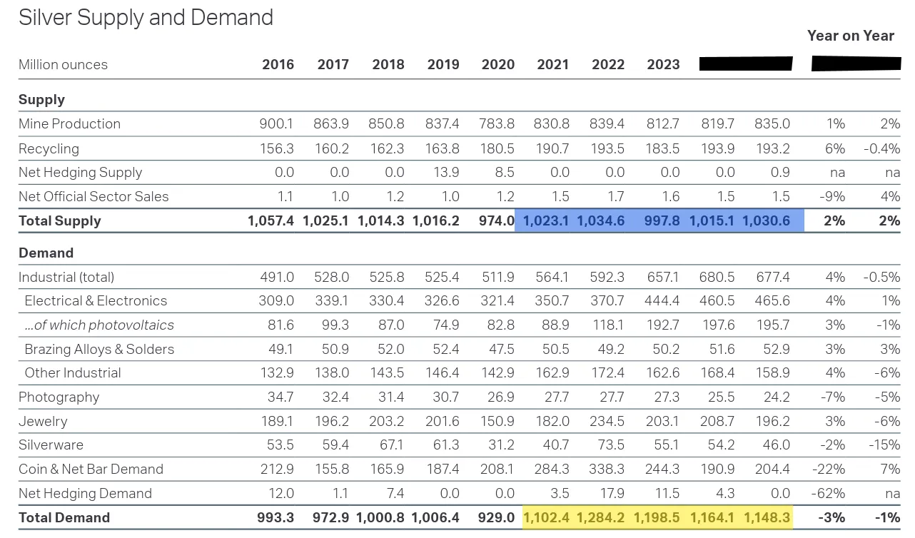 銀市場では、需要が供給を上回る状態が複数年にわたって続いています。