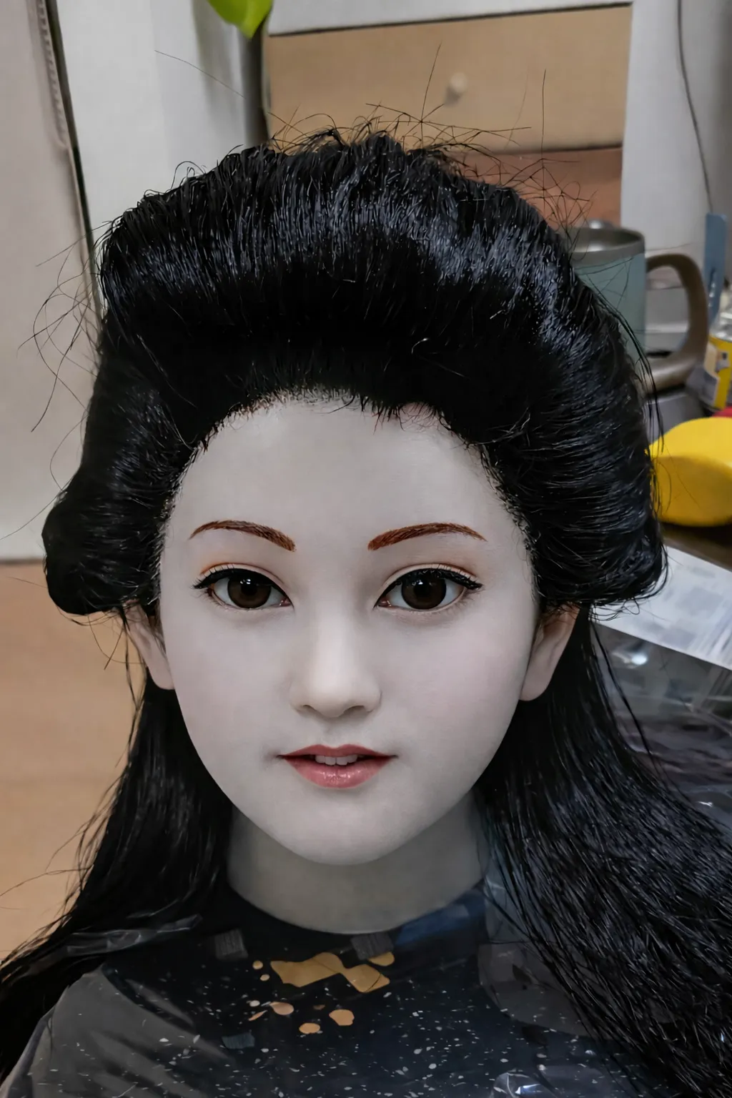 ※実際にモデルを3Dスキャンして、文楽人形のかしらの構造を取り入れて作成したAIロボットの頭部